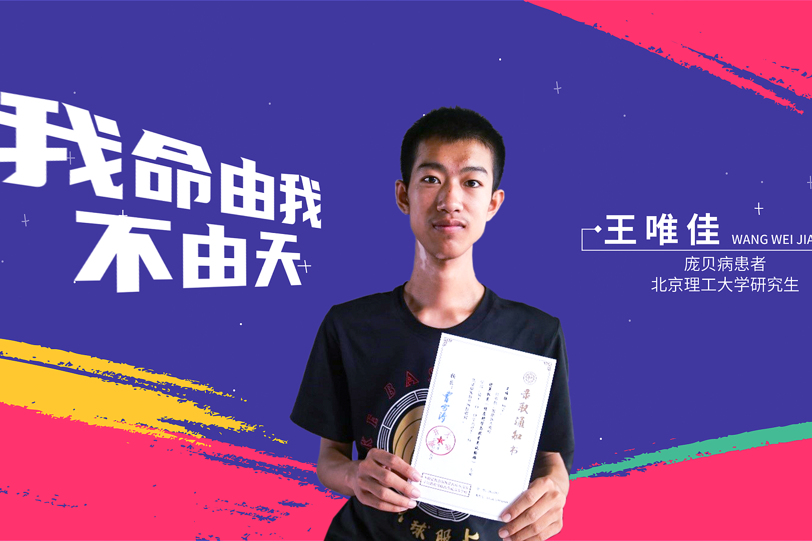 大家好,我是王唯佳,一名庞贝病患者,也是北京理工大学信息与电子学院的在读研究生。站在这里,我的双腿有些颤抖,不是因为紧张,而是因为疾病让我的肌肉日渐无力。但我想告诉大家:面对命运的宣判,我选择了说——
